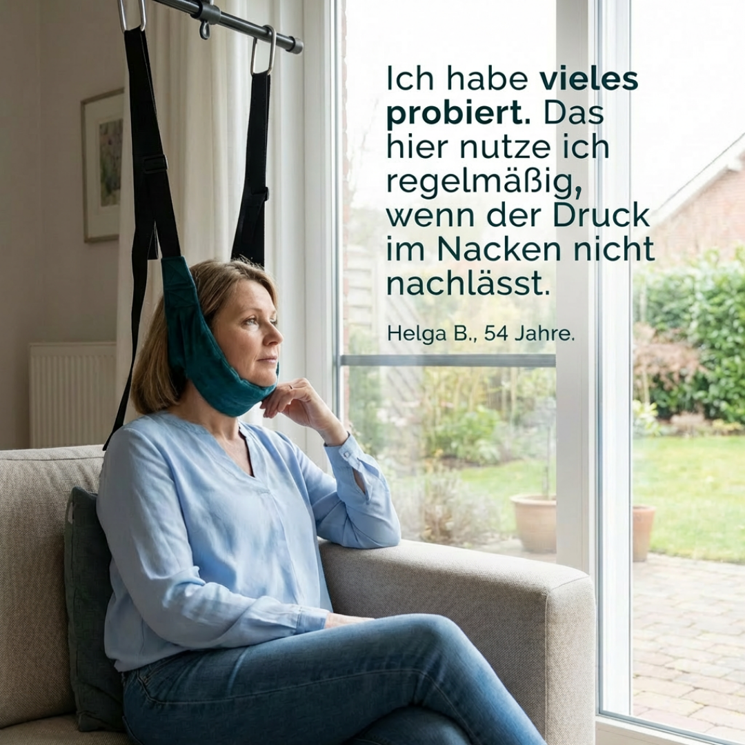 Sanfte, kontrollierte Entlastung für deine Halswirbelsäule – entwickelt für Menschen, bei denen anhaltender Druck im Nacken nicht einfach verschwindet.