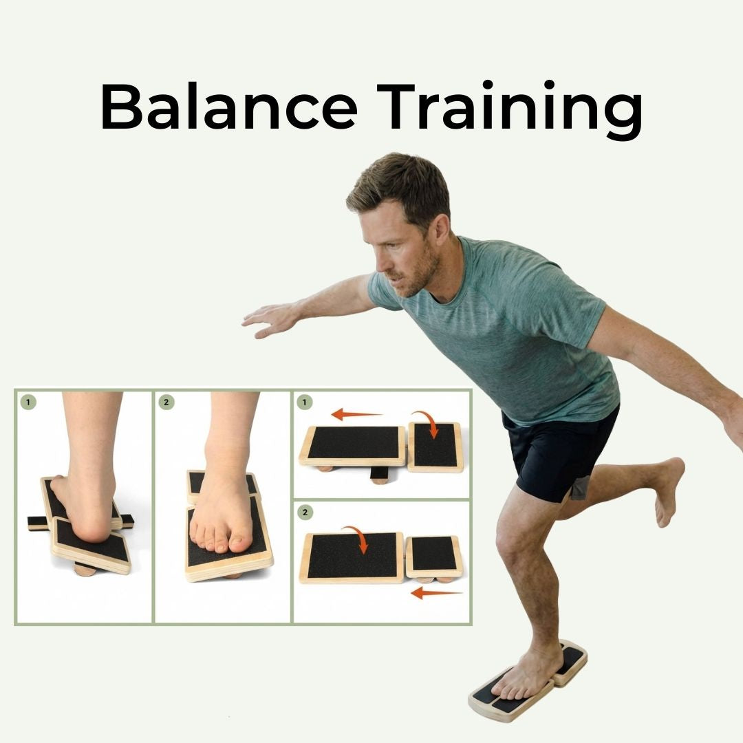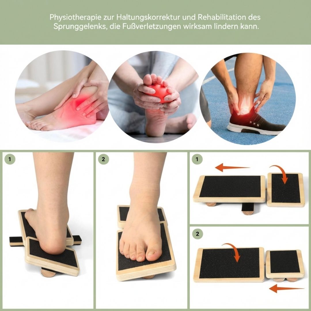 Unterstützt gezielte Balance- und Stabilitätsarbeit für Fuß & Sprunggelenk – ruhig, kontrolliert und alltagstauglich.