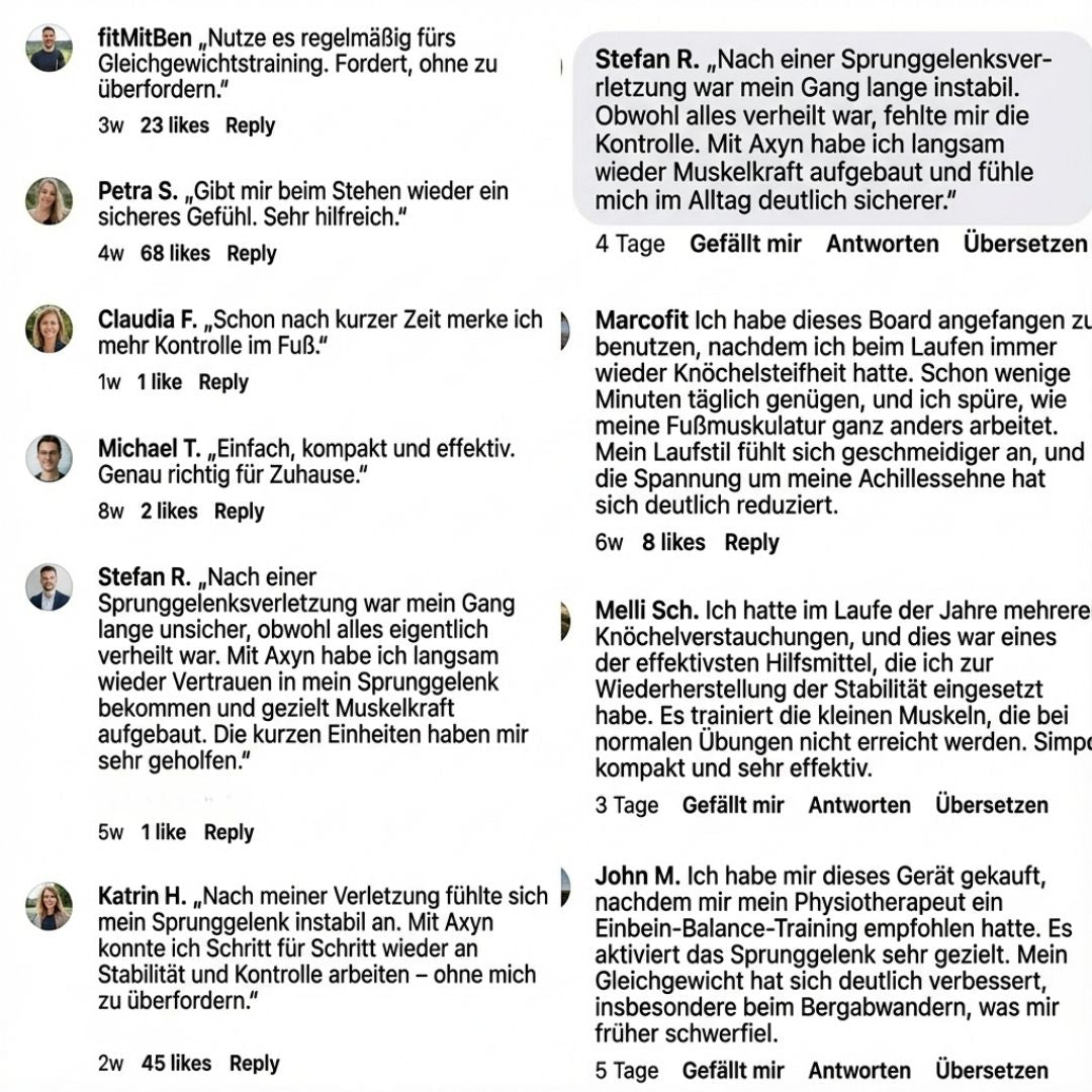 Nach einer Sprunggelenksverletzung habe ich etwas gebraucht, das mir Sicherheit gibt. Mit dem Axyn konnte ich langsam und sauber wieder Stabilität aufbauen.