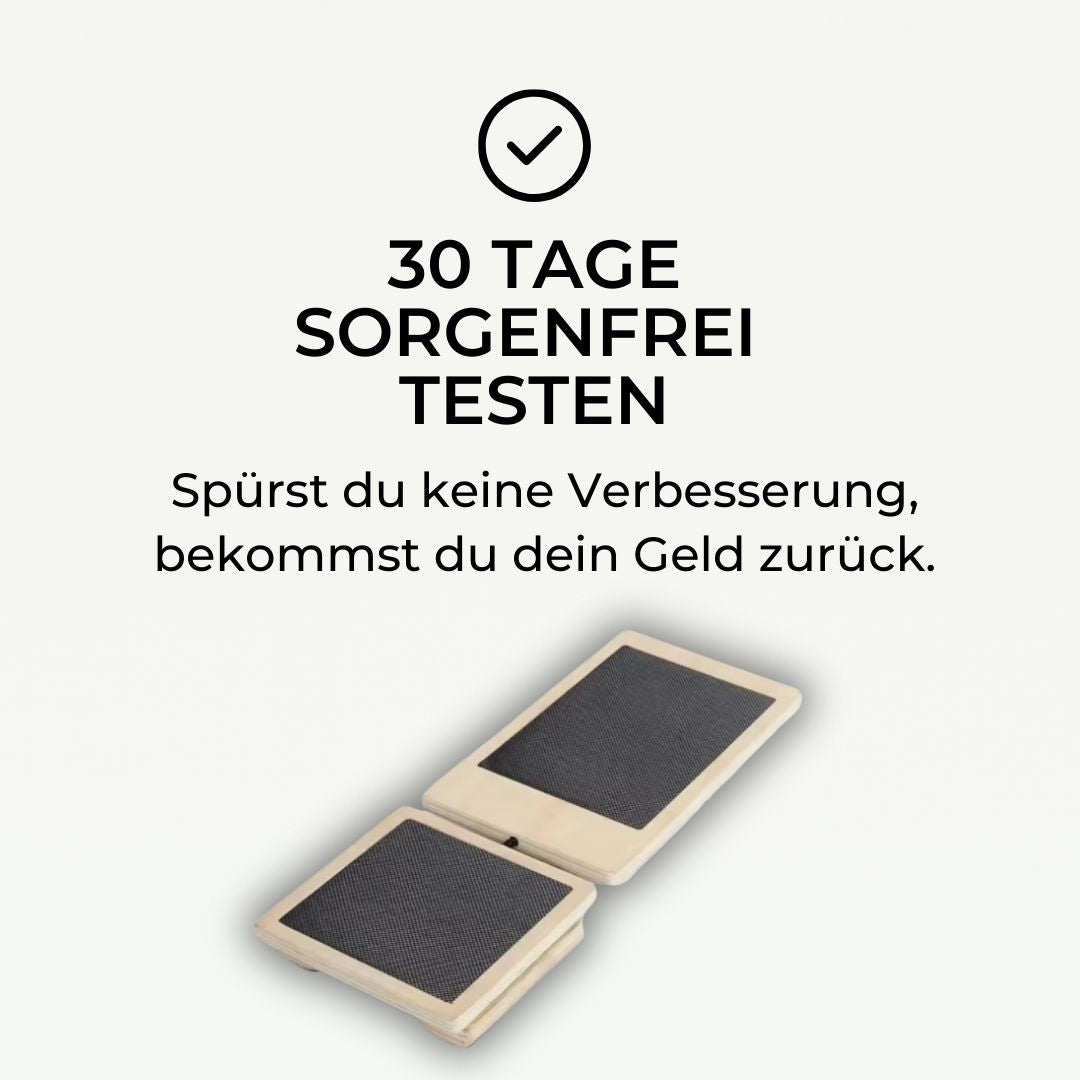 Jeder Körper reagiert anders auf Stabilisation. Deshalb kannst du das Axyn Board 30 Tage lang sorgenfrei in deinen Alltag integrieren.
