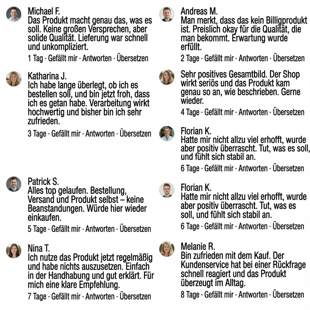 „Ich war anfangs skeptisch, aber die konstante Wärme empfinde ich als sehr wohltuend. Mein Knie fühlt sich insgesamt entspannter an, vor allem bei kühlem Wetter. Das Produkt wirkt durchdacht und hochwertig.“