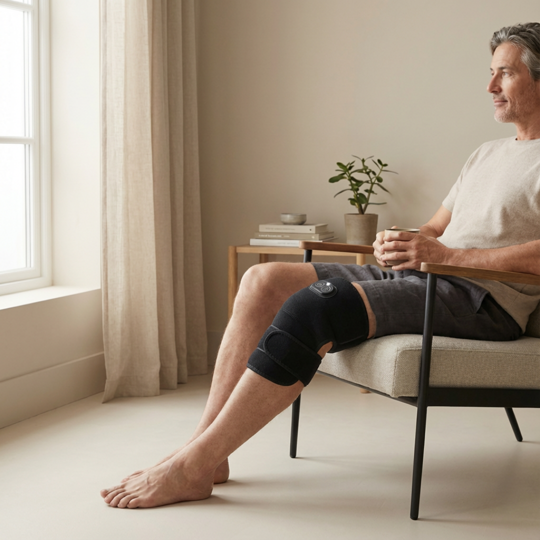 Die Wärme umschließt den Kniebereich kontrolliert, während die Massage dazu beiträgt, Spannungsgefühle zu lösen und die Entspannung zu vertiefen.